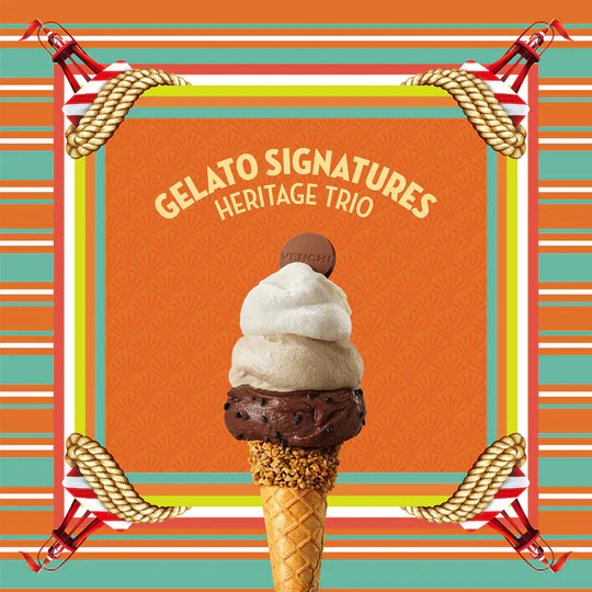 Heritage Trio consists of Chocoviar 75%, Hazelnut and Vanilla come together in a frozen embrace that tells of our creative tradition, taste and passion.